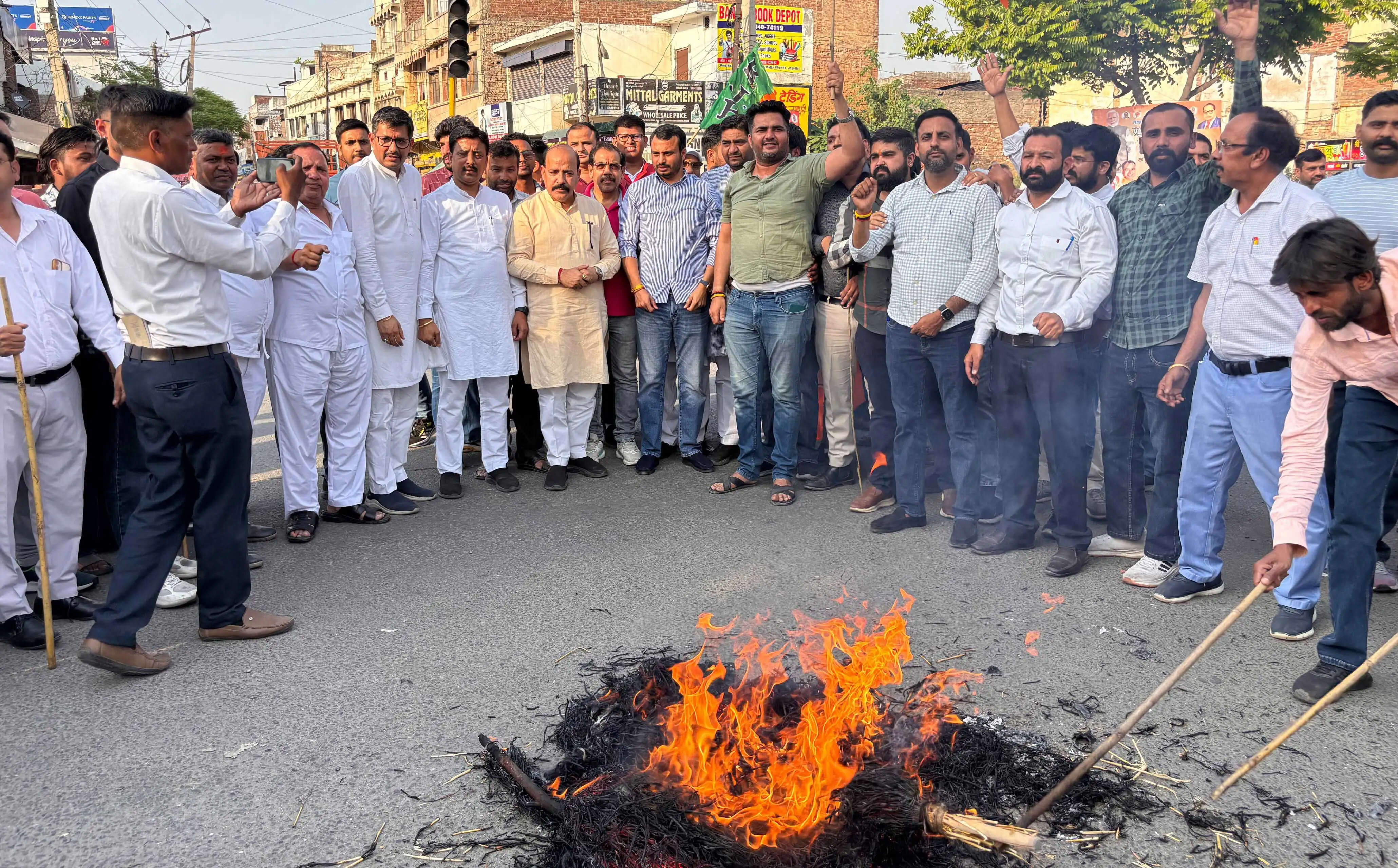 यमुनानगर, 17 अप्रैल नेशनल हेराल्ड मनी लॉन्ड्रिंग मामले में भाजपा जिला युवा मोर्चा ने शेयरों की हेराफेरी, भ्रष्टाचार और हजारों करोड़ों रुपये की जमीन हथियाने के आरोपों पर राहुल गाँधी व सोनिया गाँधी का पुतला फूंककर विरोध प्रदर्शन किया।