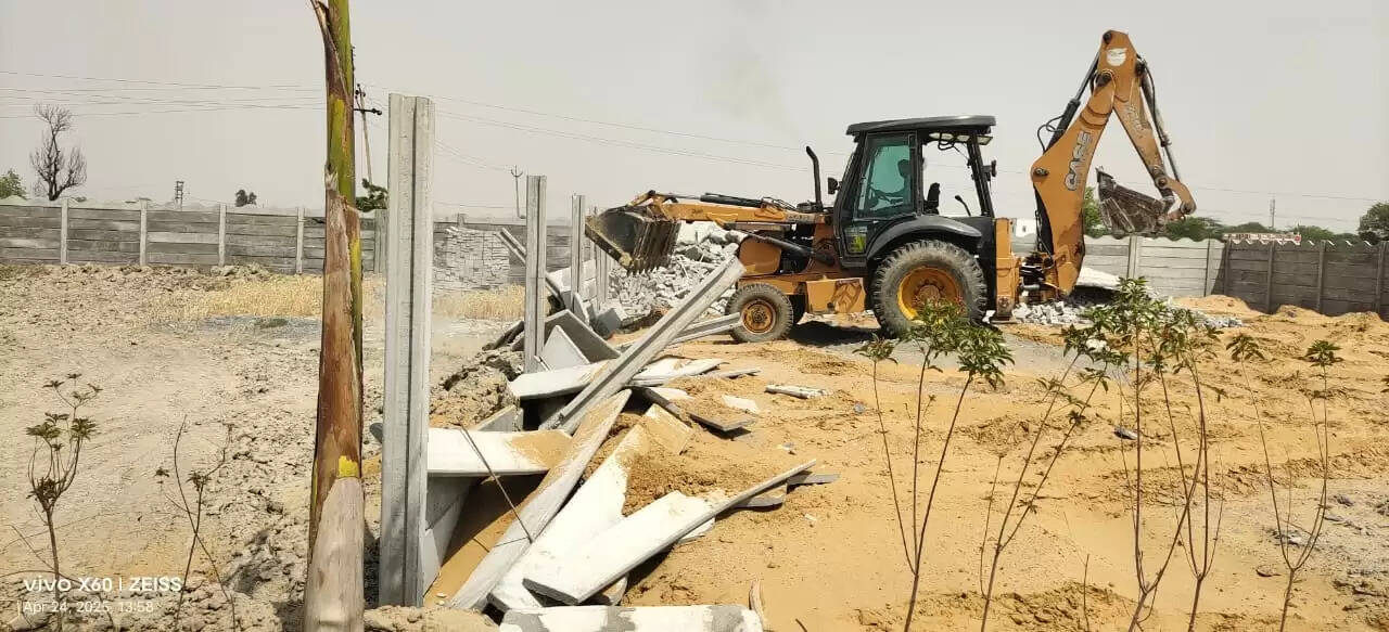 सात एकड़ में विकसित अवैध कालोनी को तोड़ा