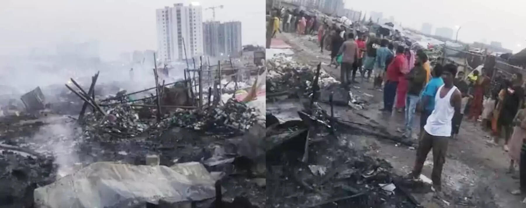 -आग से सभी झुग्गियां जलकर राख, सिलेंडरों में होते रहे धमाके