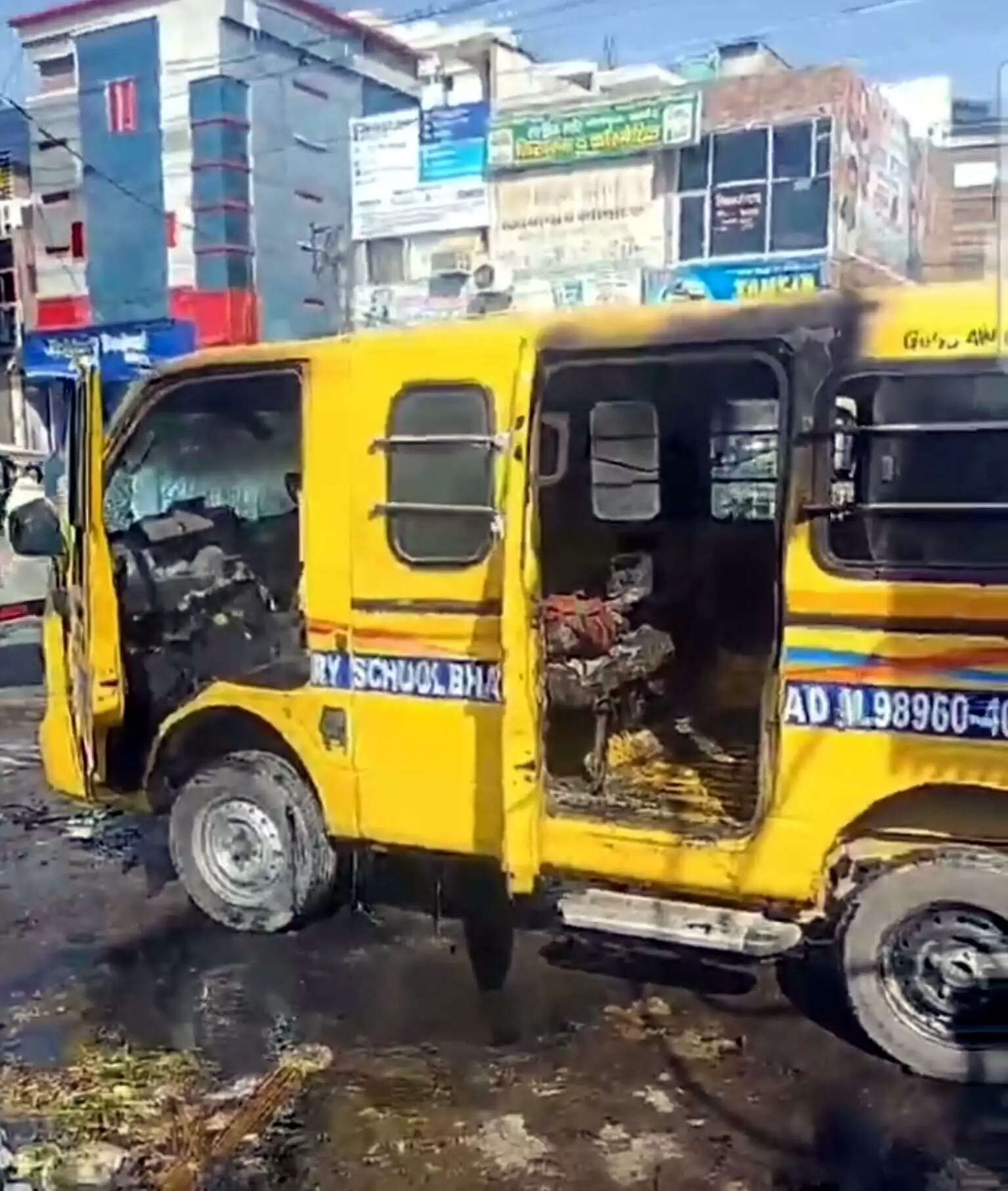चलती स्कूल वैन में लगी आग, चालक की सतर्कता से बच्ची 12 बच्चाें की जान