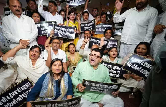 नई दिल्ली, 3 जुलाई दिल्ली नगर निगम (एमसीडी) में नेता प्रतिपक्ष अंकुश नारंग के नेतृत्व में गुरुवार को सिविक सेंटर में आआपा पार्षदों की बैठक हुई। बैठक के बाद आआपा पार्षद ने दिल्ली में सफाई व्यवस्था को लेकर महापौर राजा इकबाल सिंह के कार्यालय के बाहर कचरा रखकर विरोध प्रदर्शन किया। उन्होंने महापौर से इस्तीफा देने की मांग की।