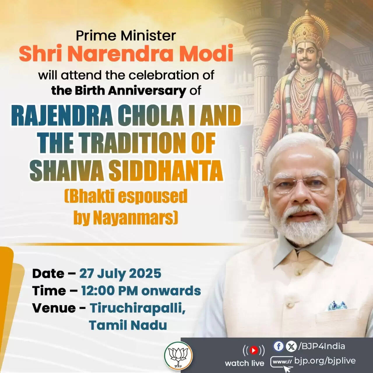 आदि तिरुवथिरई उत्सव में शामिल होंगे प्रधानमंत्री मोदी, राजेंद्र चोल प्रथम के सम्मान में स्मारक सिक्का जारी करेंगे