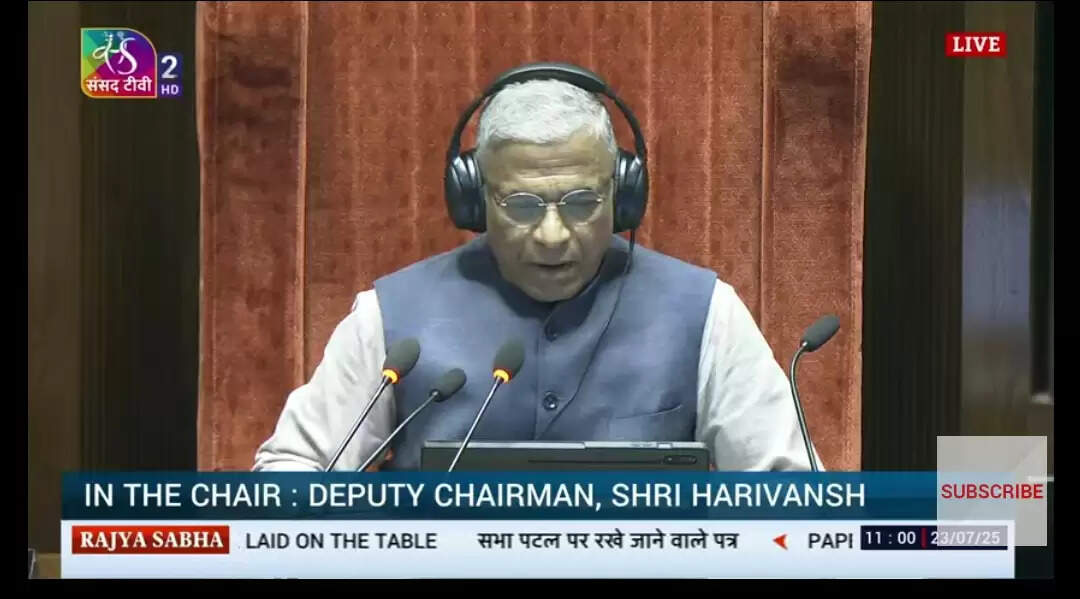 नई दिल्ली, 23 जुलाई। संसद के मानसून सत्र में विपक्षी सदस्यों की नारेबाजी के बीच राज्यसभा की कार्यवाही शुरू होने के कुछ मिनट के भीतर दोपहर 02 बजे तक के लिए स्थगित कर दी गई। इससे पहले सदन की कार्यवाही 12 बजे तक के लिए स्थगित की गई थी। राज्यसभा में न ही शून्यकाल चल पाया न ही प्रश्नकाल चल पाया। राज्यसभा के उपसभापति ने बुधवार को सदन की कार्यवाही शुरू करते हुए कहा कि आज नियम 267 के तहत 25 नोटिस प्राप्त हुए हैं। इन नोटिस पर बिहार में चल रहे मतदाता सूची में विशेष पुनरीक्षण के मामले में चर्चा कराने की मांग को अस्वीकार कर दिया। जिसके बाद सदन में हंगामा शुरू हो गया। उपसभापति हरिवंश ने सदस्यों से आग्रह किया कि राज्यसभा में एमडीएमके पार्टी के नेता वाइको कल राज्यसभा में अपना कार्यकाल पूरा कर रहे हैं। इनको महत्वपूर्ण मुद्दे पर बोलने दें। वाइको ने हंगामे के बीच श्रीलंका की नौसेना द्वारा तमिलनाडु के मछुआरों की गिरफ्तारी का मुद्दा उठाया। उसके बाद उपसभापति हरिवंश ने कार्यवाही को 12 बजे तक स्थगित कर दिया। सदन की कार्यवाही दोबारा 12 बजे शुरू हुई लेकिन हंगामे के कारण इसे फिर 02 बजे तक के लिए स्थगित कर दिया गया।