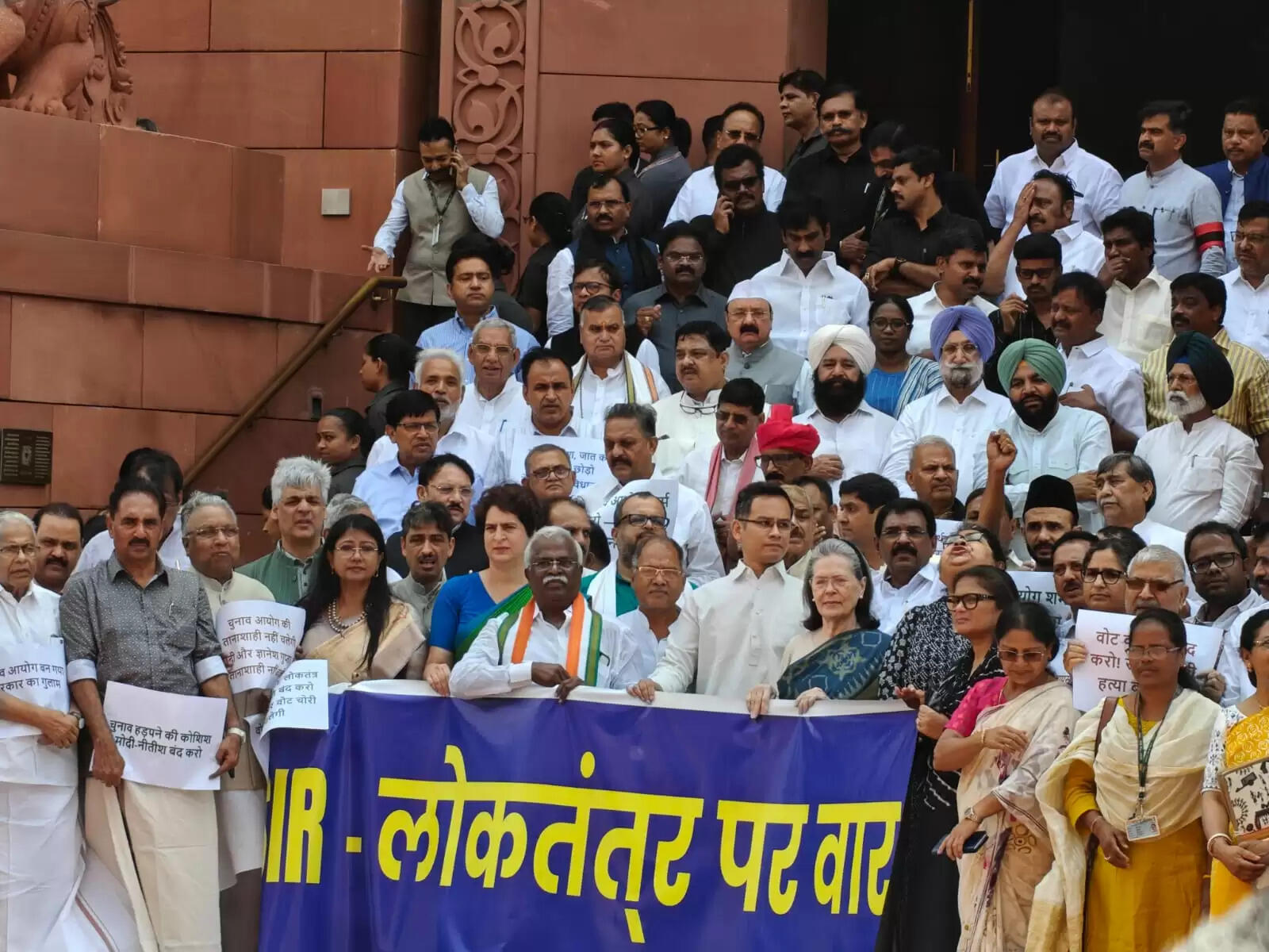 संसद भवन परिसर में एसआईआर पर विरोध में शामिल हुईं सोनिया गांधी, सांसदों ने इसे वापस लेने की मांग की