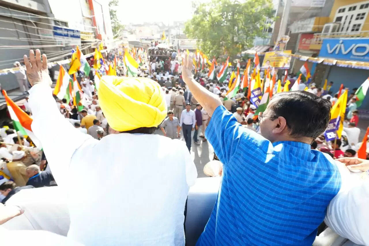 जींद, 8 जून, आम आदमी पार्टी के राष्ट्रीय संयोजक एवं दिल्ली मुख्यमंत्री अरविंद केजरीवाल और पंजाब के मुख्यमंत्री सरदार भगवंत मान ने वीरवार को हरियाणा के जींद में तिरंगा यात्रा एवं मेगा रोड़ शो निकाला। तिरंगा यात्रा और रोड शो में में आम आदमी पार्टी के कार्यकर्ता और समर्थक जींद पहुंचे। इस दौरान पूरा शहर आम आदमी पार्टी के कार्यकर्ताओं और समर्थकों से भर गया। शहर के हर चौक चौराहे पर समर्थकों की भारी भीड़ रही। समर्थकों ने अरविंद केजरीवाल और भगवंत मान के स्वागत में शहर में जगह-जगह तोरण द्वार लगाए। वहीं राष्ट्रीय संगठन महामंत्री डॉ. संदीप पाठक भी रोड शो के लिए पहुंचे। तिरंगा यात्रा को लेकर पार्टी के आप के प्रदेशाध्यक्ष डॉ सुशील गुप्ता, सीनियर वाइस प्रेसिडेंट अनुराग ढांडा, प्रदेश प्रचार समिति के अध्यक्ष डॉ. अशोक तंवर, राष्ट्रीय ज्वाइंट सेक्रेटरी मंत्री निर्मल सिंह और प्रदेश उपाध्यक्ष चित्रा सरवारा सहित अन्य वरिष्ठ नेता एक सप्ताह पहले से ही जींद में जुटे रहे। भारत माता की जय और इंकलाब के नारों के साथ जींद शहर आप मय हो गया। इसमें हजारों की संख्या में पहुंचे जनसैलाब ने सत्ता परिवर्तन का संकल्प लिया।